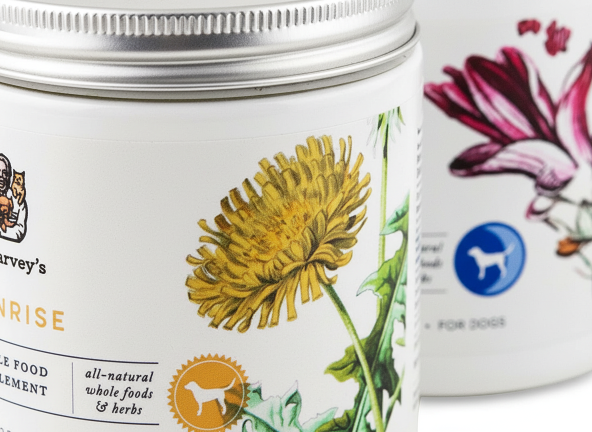 Support your dog's natural defenses and kidney health with Dr. Harvey's Solaris Immune Support. This innovative two-formula system provides distinct Sunrise and Sunset blends, delivering targeted nourishment throughout the day and night to promote your dog's overall vitality. Experience the power of nature with organic healing mushrooms like chaga, reishi, and agaricus, combined with potent herbs such as astragalus, known for its immune-boosting properties. Wheat grass aids in detoxification, while turmeric offers antioxidant and anti-inflammatory benefits to help your canine companion thrive. This whole food supplement is an excellent choice for pet parents seeking to naturally enhance their dog's well-being and resilience against daily stressors. Give your dog the comprehensive care they deserve and add Dr. Harvey's Solaris to your cart for a healthier, happier companion.