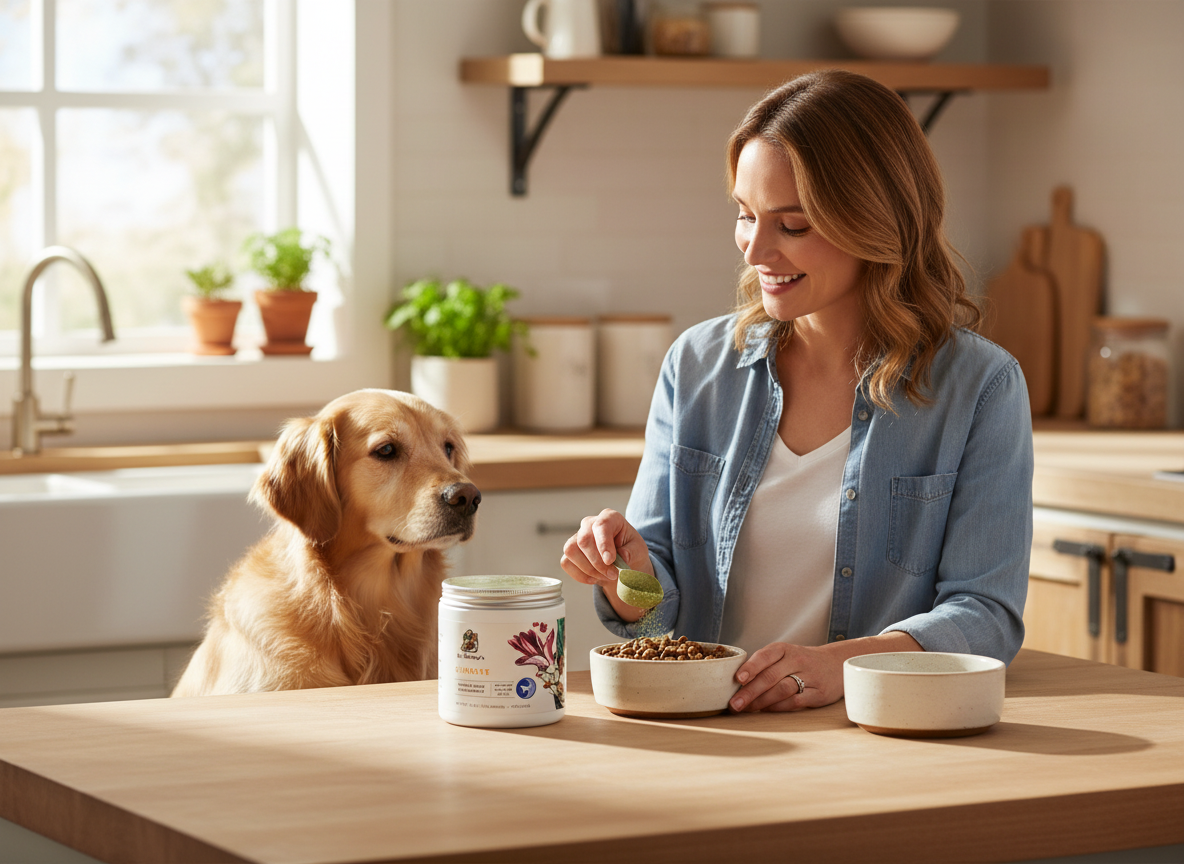 DIY options include wet food, peanut butter,bone broth, pumpkin (for digestion) and more. Sprinkle on someSuper StripsorLove Nuggetsfor an extra special treat!